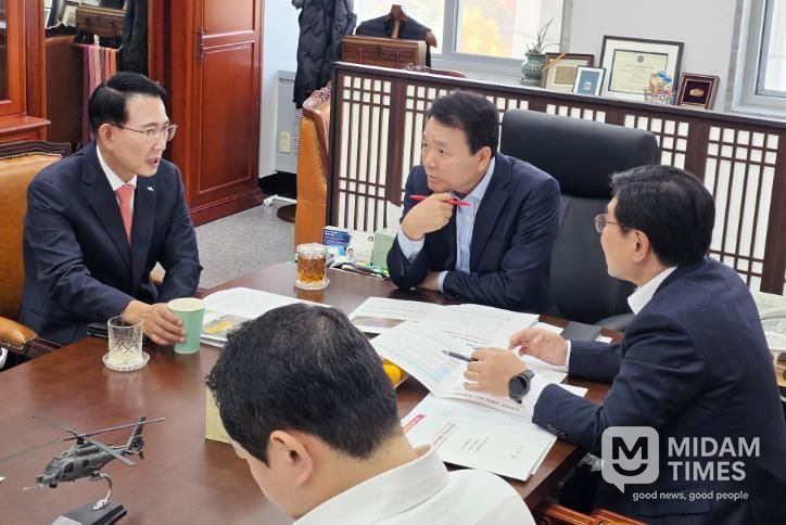 이 시장은 13일 국회에서 성일종 국방위원장을 만나 2026년도 정부 예산 심의 과정에서 서산시 주요 현안 사업에 대한 국비 반영과 증액을 건의하고, 각 사업의 필요성을 직접 설명했다.