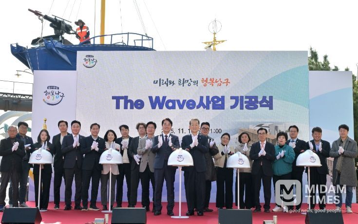 울산 남구는 이날 장생포 고래문화광장에서 서동욱 남구청장과 구민 등 150여 명이 참석한 가운데 ‘흐르는 빛 미래가 시작되는 장생포’라는 주제로 ‘The Wave 사업’ 기공식을 가졌다.