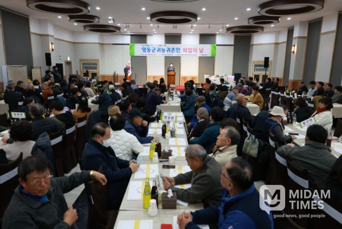 미담타임스 정인화 기자 | 충북 영동군은 18일 저녁 영동아모르아트웨딩컨벤션에서 귀농귀촌인들의 화합과 소통을 위한 ‘2025년 영동군 귀농귀촌인 화합행사’를 개최했다.