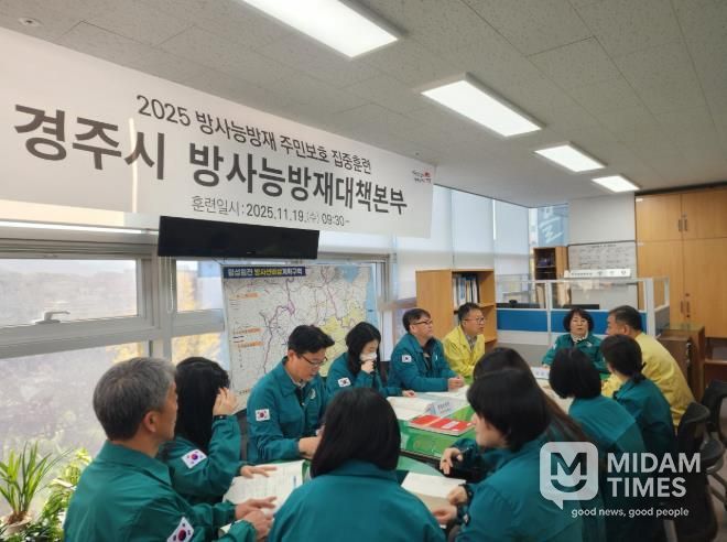 미담타임스 김준완 기자 | 경주시는 19일 월성원전 방사능 누출 사고에 대비한 ‘2025 방사능방재 주민보호 집중훈련’을 실시했다.