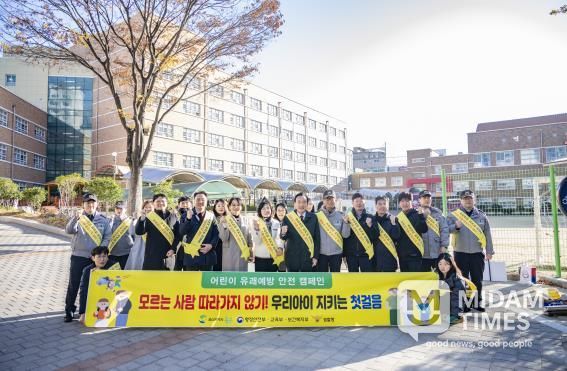 미담타임스 김준완 기자 | 울산 북구는 19일 명촌초등학교 등굣길에서 관계기관 합동 어린이 약취·유인 예방 캠페인을 진행했다.