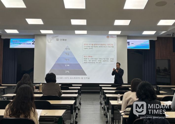 미담타임스 박민정 기자 | 제주특별자치도교육청은 18일 교육청 대회의실에서 교원 40여 명이 참여한 가운데 ‘2025 교원 대상 헌법교육 특강’을 실시했다.