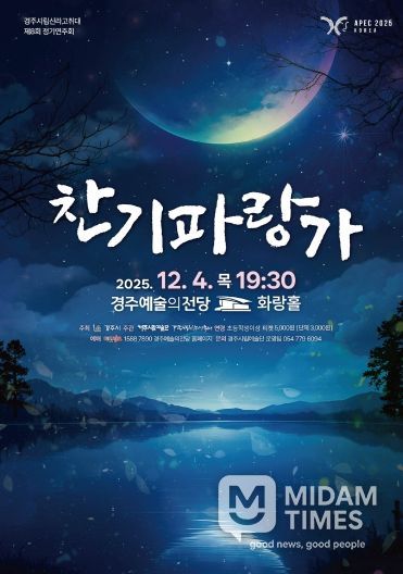 미담타임스 김준완 기자 | 경주시는 오는 12월 4일 오후 7시 30분, 경주예술의전당 화랑홀에서 경주시립신라고취대 제8회 정기연주회 ‘찬기파랑가’를 열고, 신라 고유의 문화예술과 현대 공연 콘텐츠를 결합한 수준 높은 무대를 선보일 예정이다.