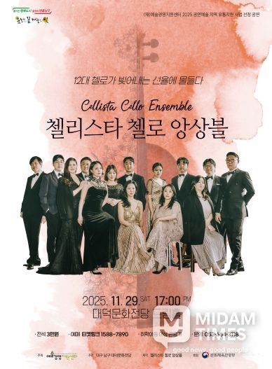 미담타임스 김교환 기자 | 오직 첼로 12대로만 구성된 유일무이한 첼로 콘서트 '첼리스타 첼로 앙상블'이 오는 11월 29일 토요일 오후 5시 대구 남구 대덕문화전당 드림홀에서 열려 클래식 애호가의 눈길을 사로잡는다.