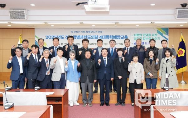 미담타임스 정인화 기자 | 전북특별자치도의회는 20일 의원 총회의실에서 도의원과 사무처 간부 공무원 50여 명을 대상으로 ‘4대폭력 예방 교육’을 진행했다.
