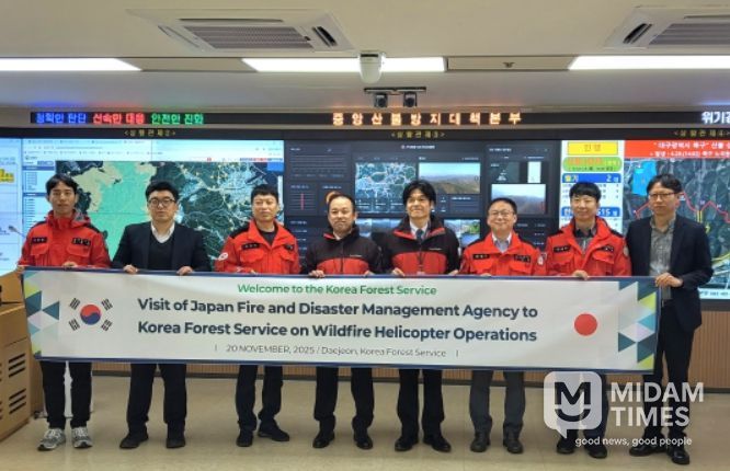 미담타임스 김준완 기자 | 산림청은 일본 소방청 대표단이 우리나라와의 산불 대응 및 기술 협력 강화를 위해 중앙산림재난상황실과 산림항공본부를 잇달아 방문했다고 20일 밝혔다.