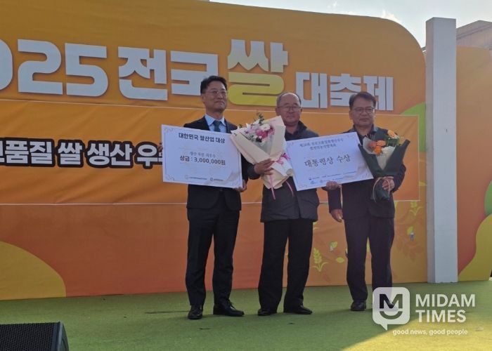 미담타임스 김준완 기자 | 김포금쌀이 대통령상을 수상하며 우수성을 입증했다. 시는 지난 20일 세종시에서 실시된 ‘제28회 전국 고품질 쌀 생산 우수 쌀전업농 선발대회’ 시상식에서 쌀전업농경기도연합회 이경재 회장이 가장 우수한 성적으로 대통령상을 수상했다고 밝혔다.