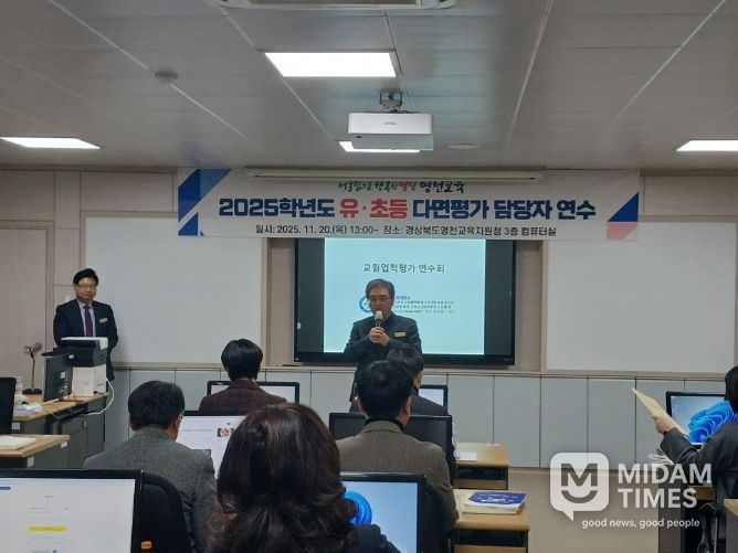 미담타임스 김준완 기자 | 경상북도영천교육지원청은 지난 20일 지역 내 유치원 및 초등학교 인사업무 담당자 21명을 대상으로 2025학년도 유·초등 다면평가 담당자 연수’를 개최했다.