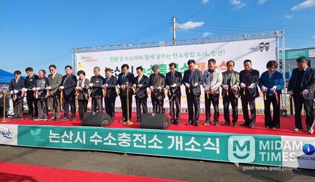 미담타임스 김준완 기자 | (재)충남테크노파크(원장 서규석)는 논산시와 협력해 추진한 ‘논산시 수소충전소’가 21일 논산시 부적면에서 개소식을 열고 본격 운영을 시작했다고 밝혔다.