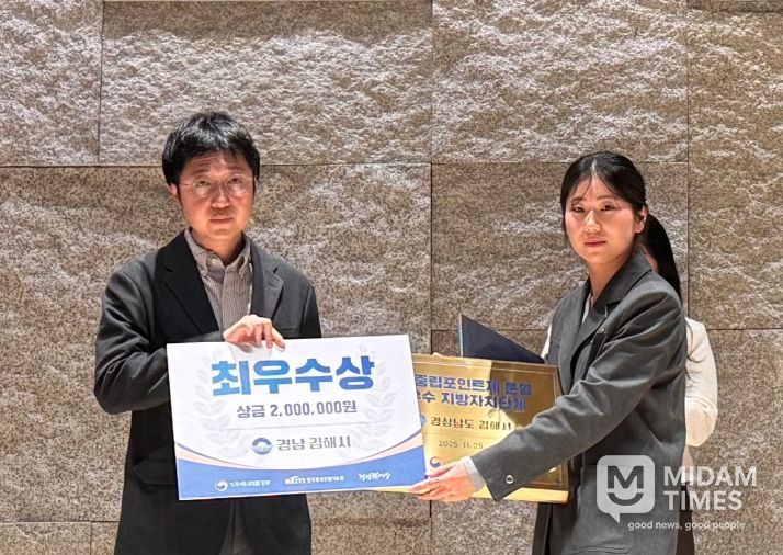 미담타임스 김준완 기자 | 김해시는 환경부 주관 2025년 탄소중립포인트제 운영 평가에서 최우수 지자체로 선정됐다고 26일 밝혔다.