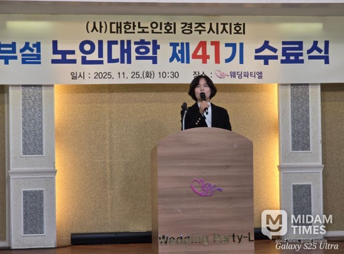 미담타임스 김준완 기자 | 경주시는 대한노인회 경주시지회 부설 ‘경주시 노인대학 제41기 수료식’이 지난 25일 오전 11시 웨딩파티엘에서 성황리에 열렸다고 밝혔다.