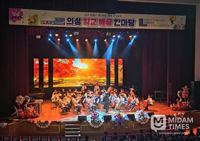 미담타임스 김준완 기자 | 경상북도교육청 의성교육지원청은 11월 25일 오후 1시 30분에 의성문화회관에서 관내 초・중・고등학교 학생, 학부모, 교직원 등 교육공동체 600여 명이 함께하는 2025 의성학교예술한마당을 열었다.