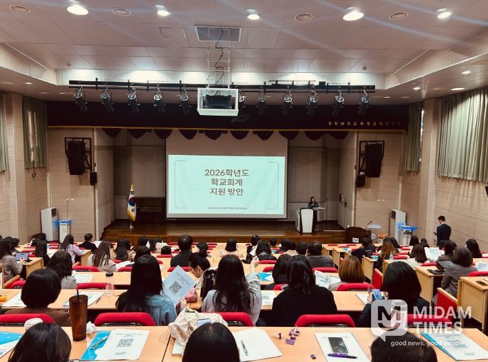 미담타임스 박민정 기자 | 경상남도교육청은 26일부터 12월 21일까지 도내 전 교직원을 대상으로 ‘2026학년도 학교회계 예산편성 기본지침 온라인 전달연수’를 운영한다.