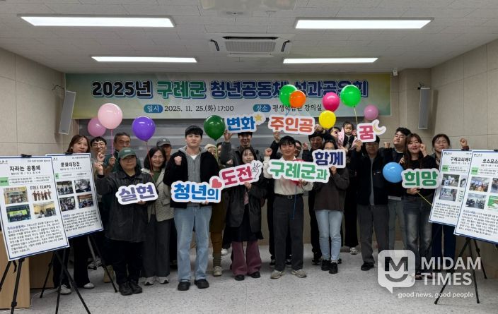 미담타임스 정인화 기자 | 전남 구례군은 지난 25일 구례군 평생학습관에서 지역 청년들의 주도적 사회 참여와 공동체 네트워크 강화를 위한 ‘2025년 청년공동체 활성화사업 성과공유회’를 개최하며, 올 한 해 청년공동체 활동을 마무리했다고 밝혔다.
