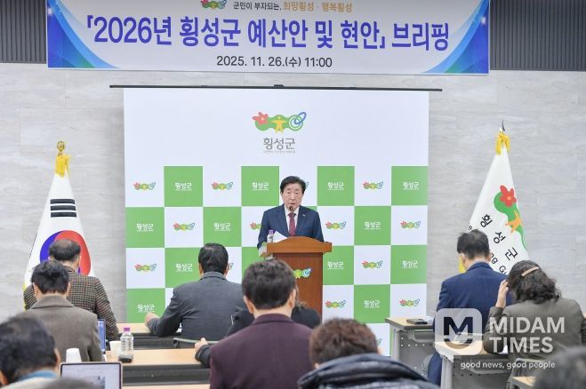 미담타임스 정인화 기자 | 횡성군은 26일 11시 횡성군청 대회의실에서 기자브리핑을 열고 내년도 예산편성 방향과 핵심과제 등 군정 중점 추진 사항을 공유했다.