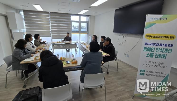 미담타임스 김준완 기자 | 울산 중구지역사회보장협의체 장애인분과가 11월 26일 오전 11시 울산장애인통합지원센터 교육실에서 ‘복지사각지대 해소를 위한 장애인 인식 개선 소통 간담회’를 개최했다.