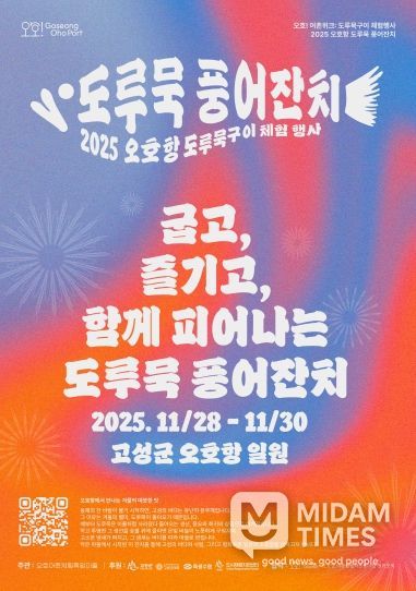 미담타임스 김준완 기자 | 평화 경제 거점 도시 강원 고성군은 겨울철 대표적인 수산물인 도루묵 풍어축제가 ‘굽고, 즐기고 함께 피어나는 도루묵 풍어잔치’라는 주제로 죽왕면 오호항(오호리 68-20번지) 일원에서 11월 28일부터 30일까지 3일간 진행한다.