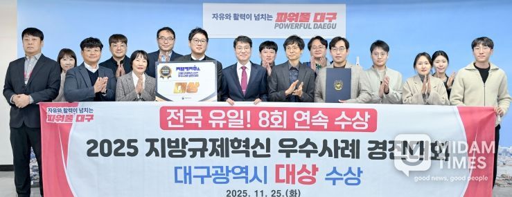 미담타임스 김교환 기자 | 대구광역시는 행정안전부가 주관한 ‘2025년 지방규제혁신 우수사례 경진대회’에서 ‘대상’을 수상했다.