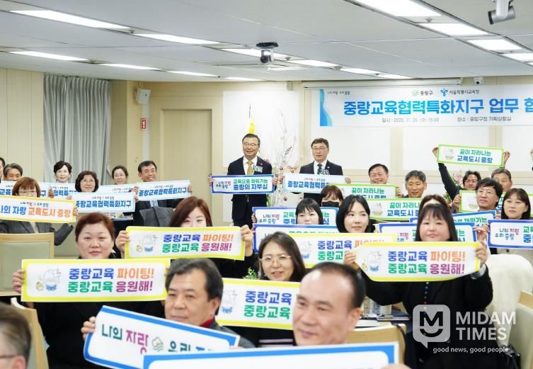 미담타임스 정주환 기자 | 중랑구는 11월 26일 구청 4층 기획상황실에서 서울특별시교육청과 ‘중랑교육협력특화지구’업무협약을 체결했다. 이번 협약은 2019년 혁신교육지구, 2023년 미래교육지구 추진에 이어 지역 교육 협력사업을 확장하는 단계로, 구·교육청·학교 간 협력 구조를 체계화해 지역 기반 교육 환경을 강화하기 위해 마련됐다.