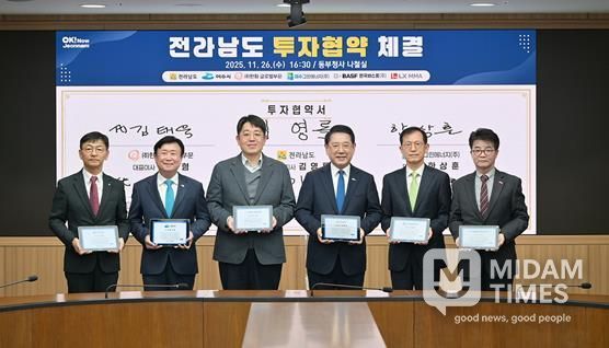 미담타임스 정인화 기자 | 여수시는 지난 26일 전라남도 동부지역본부 나철실에서 전라남도와 여수그린에너지㈜, ㈜한화 글로벌부문, ㈜LX MMA 등과 총 1조 2,441억 원 규모의 투자협약을 체결했다고 밝혔다.