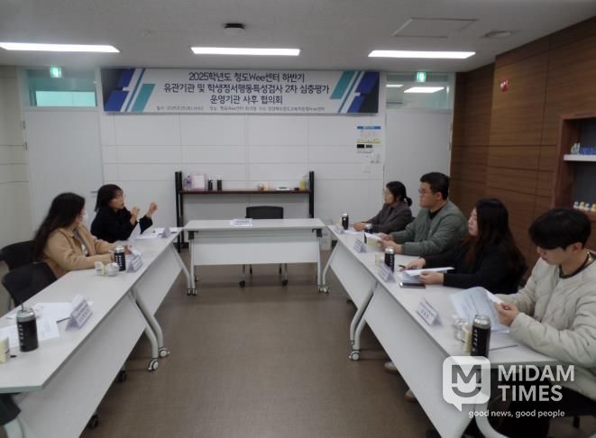 미담타임스 김준완 기자 | 청도교육지원청 Wee센터는 11월 25일 화요일에 청도군정신건강복지센터, 청도군청소년상담복지센터, 청도군가족센터 업무 담당자와 함께 유관기관 협의회와 학생정서행동특성검사 2차 심층평가 운영기관에 대한 사후 협의회를 실시했다.