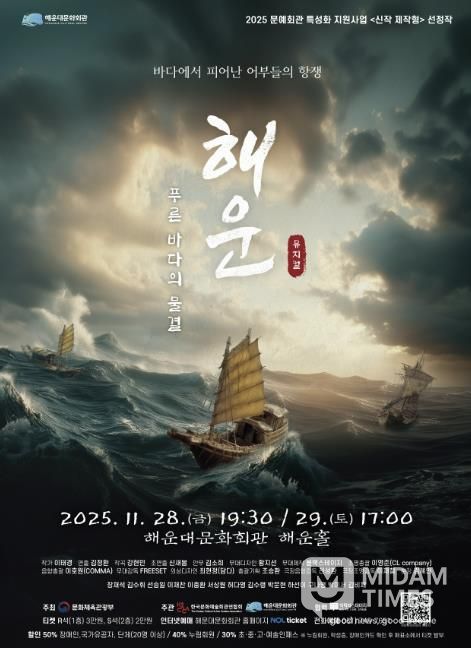 미담타임스 김교환 기자 | 해운대문화회관은 28일과 29일 창작뮤지컬 ‘해운(海雲):푸른바다의 물결’을 해운홀 무대에 올린다.