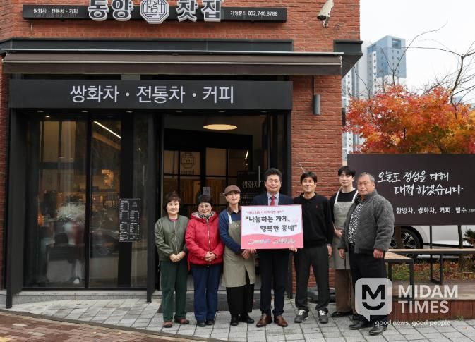 미담타임스 정주환 기자 | 김정헌 인천 중구청장이 지난 25일 영종국제도시 중산동에 있는 착한가게 ‘동양찻집(인천 중구 오작로 80)’을 방문해 감사와 격려의 인사를 전했다.
