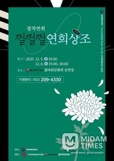 미담타임스 김준완 기자 | 울산 동구가 문화체육관광부의 2025년 문예회관 특성화 지원사업에 선정되어 확보한 지원금으로 제작한 기획공연 ‘껄껄껄 연희상조’를 공연한다.