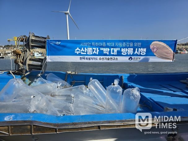 미담타임스 김준완 기자 | 군산시는 관내 해역 어족자원 감소에 대응하고자 전북특별자치도 수산기술연구소와 협의하여 인공산란과 수정란 확보를 통해 성장시킨 건강한 박대종자 5만미를 11월 28일 옥도면 비안도 해역에 무상방류했다고 밝혔다.