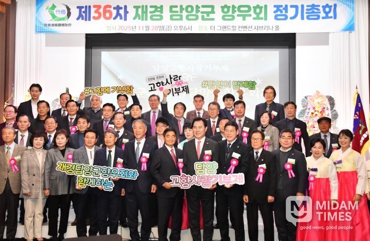 한편, 향우회는 올해 호우피해 주민들을 돕기 위해 향우회원들이 동참해 모은 고향사랑기부금 1,655만 원을 담양군에 전달했으며, 이번 총회 현장에서도 향우회원 18명이 뜻을 모아 210만 원을 기부해 고향을 향한 마음을 다시 한번 보여줬다.