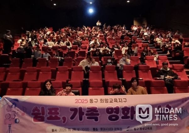 미담타임스 김교환 기자 | 부산 동구는 지난 11월 29일 롯데시네마 광복점에서 2025년 동구 희망교육지구 ‘쉼표, 가족 영화의 날’ 프로그램을 개최했다. 이번 행사에는 관내 초·중학생 및 학부모 등 200여 명이 참여했다.