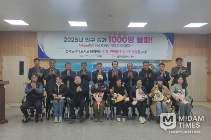 정성주 김제시장은 “2025년 인구 1,000명 증가는 김제의 도시 체질이 변화하고 있다는 분명한 신호”라며 “일시적인 성과에 그치지 않도록 지속 가능한 인구 증가 도시를 만들어가겠다”고 말했다.