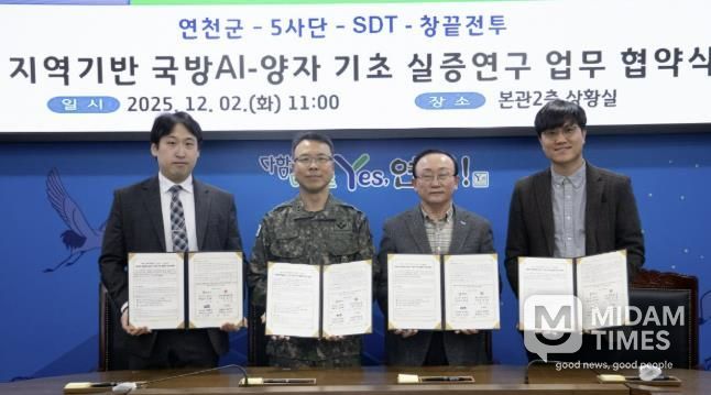 미담타임스 정주환 기자 | 연천군은 지난 2일 군청 상황실에서 육군 제5보병사단, SDT(주), 사단법인 창끝전투와 함께 AI 대전환 시대에 대응하고 지역의 새로운 성장 동력을 확보하기 위한 ‘지역기반 국방 AI·양자 기초 실증연구’ 업무협약을 체결했다고 밝혔다.