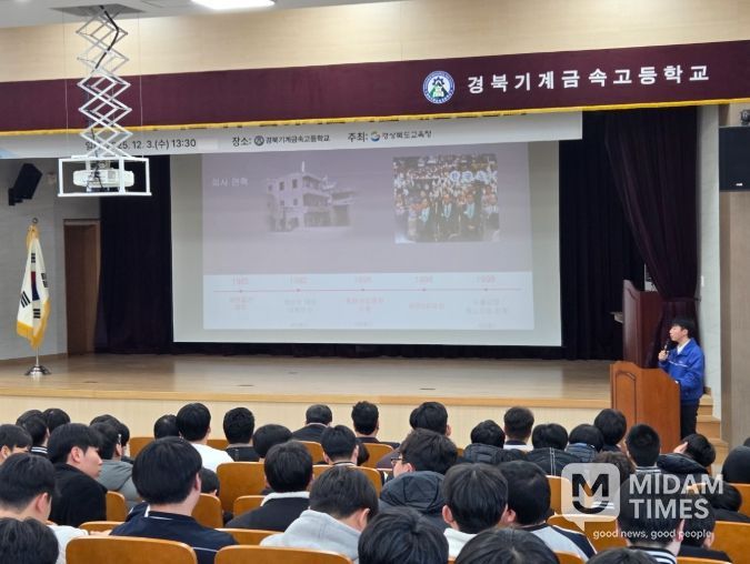 미담타임스 김준완 기자 | 경북교육청은 3일 경산시에 있는 경북기계금속고등학교 계성아트홀에서 도내 직업계고 학생 465명과 취업지원관․교사 등 총 507명이 참석한 가운데 ‘2025년 직업교육 혁신지구 참여기업 사전 채용설명회’를 성황리에 개최했다고 밝혔다.