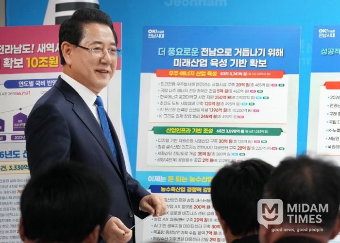 여기에 민간전용 우주발사체 엔진연소 시험시설, 디지털 기반 자원순환 시범산단, 국립 김 산업 진흥원설립, 2026 섬 방문의 해 추진 등 권역별로 경제 활성화를 이끌 신규사업도 103건 3천330억 원(총사업비 7조 3천억 원 규모)을 확보, 전남도의 성장동력을 꾸준히 이어가게 됐다.