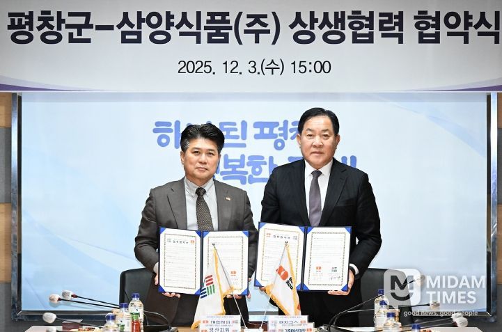 미담타임스 정인화 기자 | 평창군과 삼양식품은 지방 소멸 위기에 대응하고 지속 가능한 지역 성장 기반을 마련하기 위해 ‘지방 살리기 상생 자매결연’ 업무협약을 체결했다.