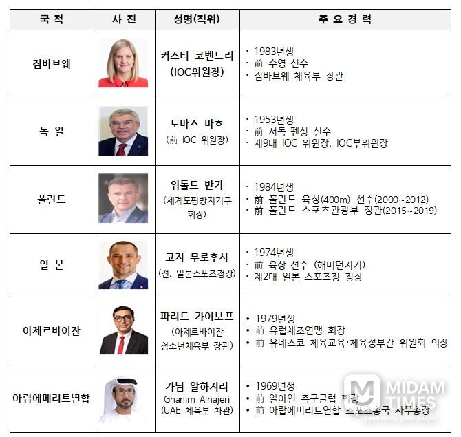 어제(2일)는 총회 개회식에 참석한 ▲커스티 코벤트리(Kirsty Leigh Coventry) 국제올림픽위원회(IOC) 위원장 ▲토마스 바흐(Thomas Bach) 전(前) 국제올림픽위원회(IOC) 위원장 ▲위톨드 반카(Witold Banka) 세계도핑방지기구 회장 ▲고지 무로후시(Koji Murofushi) 전(前) 일본 스포츠청장 등과 만남을 가졌다.
