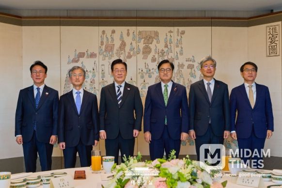 미담타임스 김교환 기자 | 3일 이재명 대통령과 5부 요인의 오찬은 1시간 40분 동안 화기애애한 분위기 속에 진행됐다.