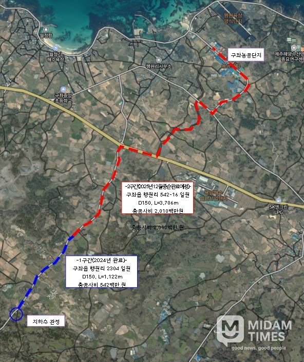 이번 사업은 2024년 6월에 착수해 제주시 구좌읍 행원리의 지하수관정에서 구좌농공단지까지 이어지는 노후 관로 구간을 전면 교체하는 내용을 포함하고 있으며, 총 사업비는 25억 5,000만 원이 투입됐다.