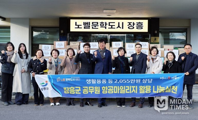 미담타임스 정인화 기자 | 장흥군 공무원 122명이 공적 항공마일리지를 활용해 마련한 20,558,250원 상당의 생필품 197점을 지역 취약계층에 전달했다.