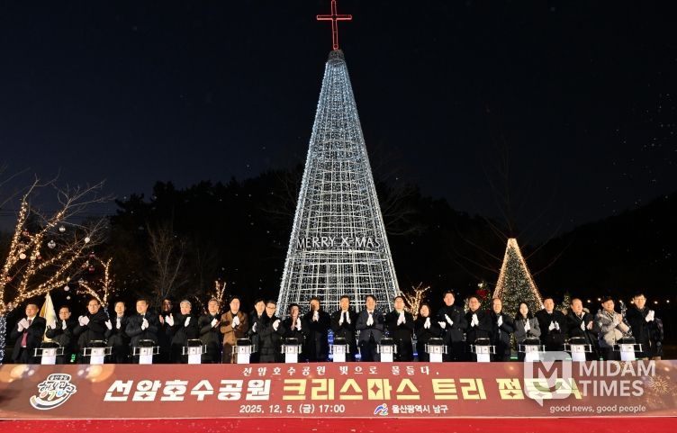 미담타임스 김준완 기자 | 울산 남구는 5일 선암호수공원 녹색의 숲 잔디마당에서 ‘2025 선암호수공원 크리스마스 트리 점등식’을 열고 화려하게 불을 밝혔다.
