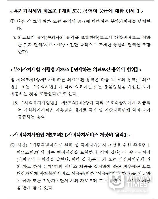 그동안 업계에서는 바우처 방식의 산모‧신생아 돌봄 서비스는 바우처를 대가로 산모에게 공급하는 용역이며, 해당 용역은 부가가치세 면세대상 용역*에 해당되므로 본인부담금 부분도 면세로 보아야 한다고 주장하며, 현장에서 과‧면세 적용 여부로 혼란을 겪음에 따라 본인부담금 부분에 대해 과세로 판단한 기존 유권해석에 대한 재검토를 지속적으로 건의해 왔다.