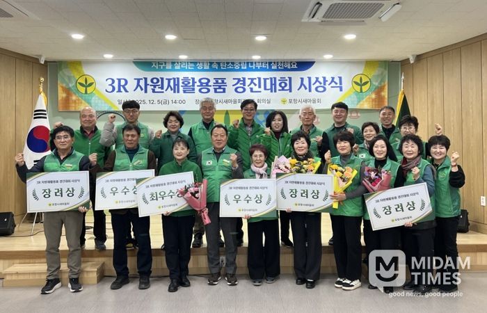 미담타임스 김준완 기자 | 포항시새마을회는 지난 5일 포항시새마을회관에서 ‘2025년 3R 자원 재활용품 수집 경진대회’의 성과를 공유하고 우수 단체를 격려하는 시상식을 개최했다.