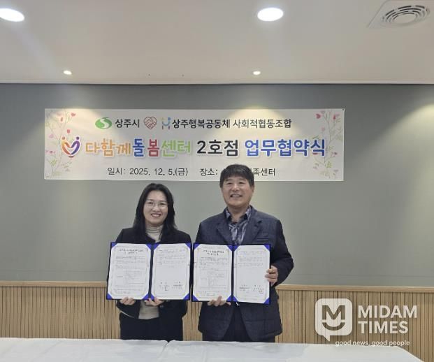 미담타임스 김준완 기자 | 상주시는 12월 5일 상주시가족센터에서 상주시 다함께돌봄센터 2호점 위수탁 협약식을 개최하고, 수탁기관으로 상주행복공동체 사회적협동조합을 최종 선정하여 협약을 체결했다.