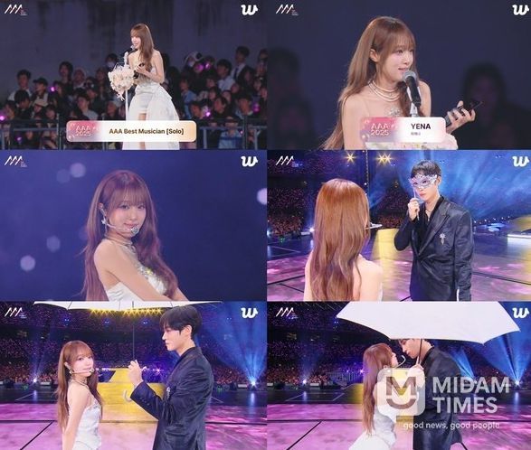 미담타임스 김교환 기자 | 가수 최예나(YENA)가 'AAA' 베스트 뮤지션 상을 수상, 추영우와 설렘 퍼포먼스로 존재감을 드러냈다.