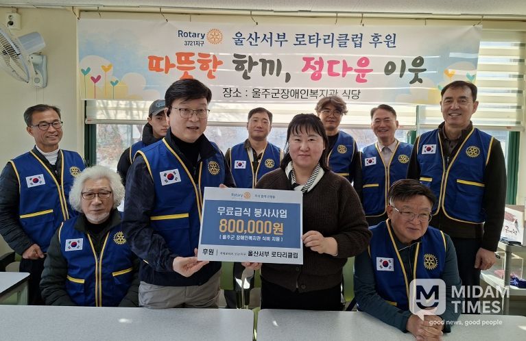 미담타임스 김준완 기자 | 울산서부로타리클럽(회장 김봉민)은 8일 울주군시설관리공단(이사장 최인식) 서부장애인복지관을 방문하여 이용자 150여 명에게 무료 급식을 제공했다.