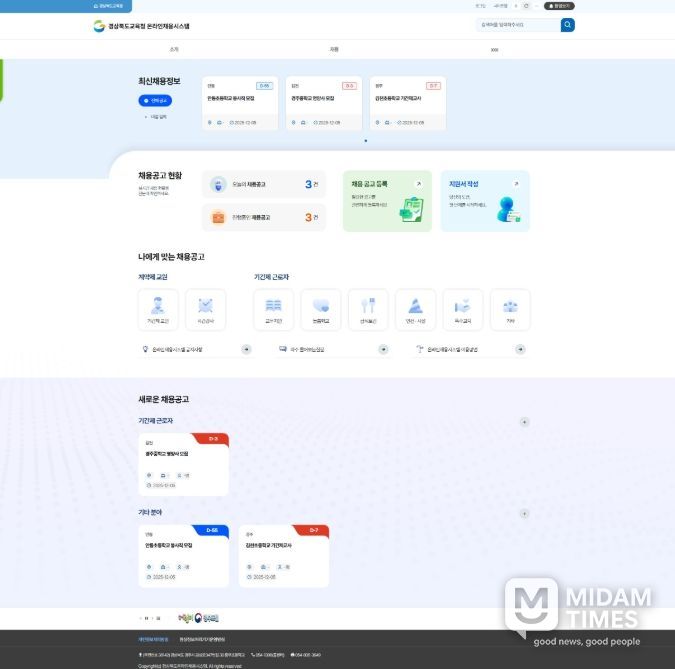 경북교육청 관계자는 “경북교육 인력 채용시스템은 학교지원센터의 복잡한 채용 절차를 하나의 플랫폼으로 통합해 행정업무를 경감하기 위한 것”이라며, “1개월간 시범운영을 거쳐 2026년 2월 중 본격 운영을 시작할 계획”이라고 말했다.