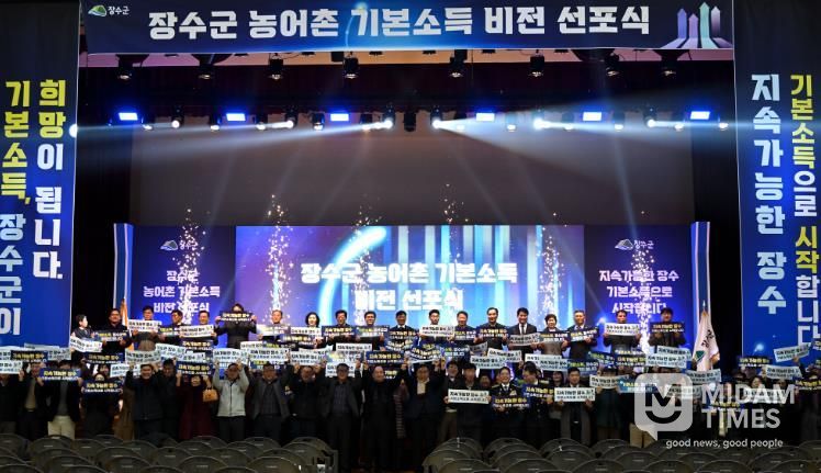 미담타임스 정인화 기자 | 장수군은 8일 한누리전당 산디관에서 ‘농어촌 기본소득 비전 선포식’ 행사가 성황리에 개최됐다고 밝혔다.