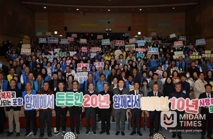 미담타임스 김준완 기자 | 포항시지역사회보장협의체는 9일 포항시평생학습원 덕업관에서 대표협의체·실무협의체·실무분과·읍면동협의체 위원 및 관계 공무원 등 500여 명이 참석한 가운데 ‘2025 포항시지역사회보장협의체 20주년 및 읍·면·동지역사회보장협의체 10주년 기념식’을 개최했다.