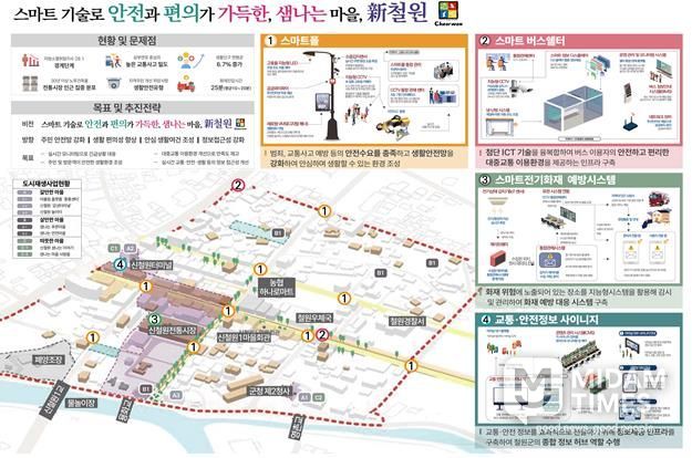 주요 사업 내용으로 갈말읍 신철원에 △사각지대 없는 안심 정주환경 조성을 위한 스마트폴 설치 △기후변화(혹서, 혹한, 미세먼지 등)로 취약했던 대중교통 환경개선을 위한 스마트버스쉘터 설치 △신철원 전통시장 전기요인 화재예방으로 실질적인 안전망 구축을 위한 스마트전기화재 예방시스템 구축 △ 신철원 감성터미널을 스마트 정보 거점의 지역관문으로 조성하기 위한 교통·안전정보 사이니지 설치 등이다.